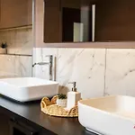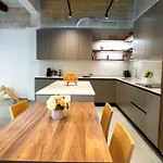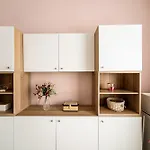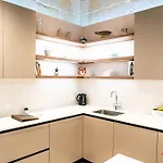 The kitchen amenities at the accommodation feature a microwave oven, an electric kettle, and kitchenware, provided in a dining area. The nearest bus stop, Crieki, is only 400 metres away.